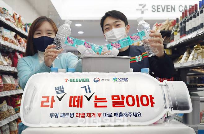 세븐일레븐은 환경부의 투명 페트병 별도 분리배출 홍보 스티커를 전국 모든 가맹점의 워크인쿨러 냉장고(WIC) 페트음료 코너에 부착하고 점포 내부에 설치되어 있는 디지털사이니지와 POS 객면화면에도 송출하여 페트병 별도 배출의 중요성을 지속적으로 알릴 예정이다. 이외에도 인증샷 및 댓글 이벤트를 진행할 예정이다. (사진=세븐일레븐)
