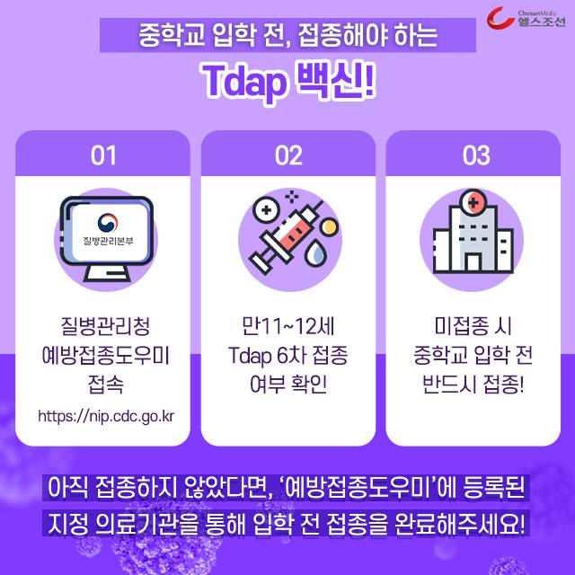 [카드뉴스] 코로나 시대, 중학교 입학준비의 기본! Tdap 백신 접종 잊지 않으셨죠?