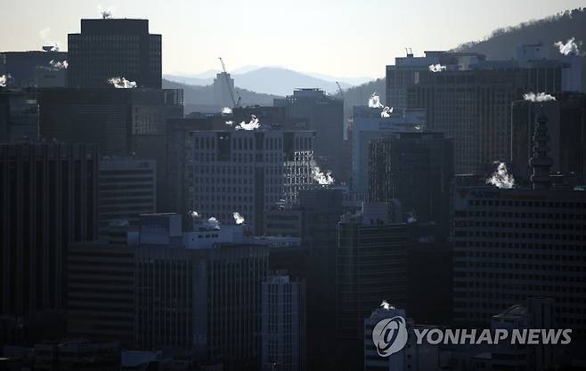 (서울=연합뉴스) 박동주 기자 = 서울을 비롯한 수도권과 경북 내륙 등의 아침 기온이 영하 10도 이하로 떨어지며 매우 추운 날씨를 보인 29일 오전 서울 시내 빌딩에서 난방으로 인한 수증기가 나오고 있다. 2021.1.29