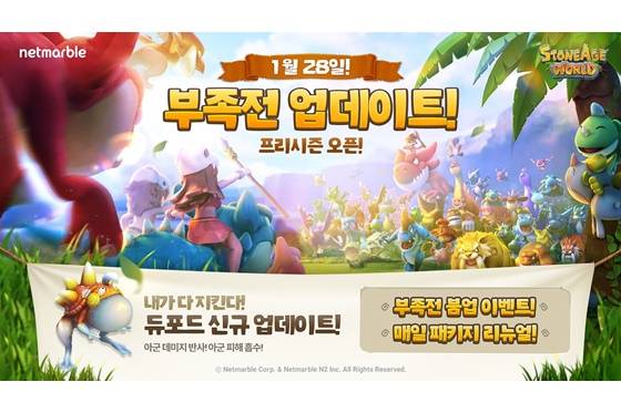 넷마블(대표 권영식, 이승원)은 모바일 턴제 MMORPG '스톤에이지 월드'에 신규 펫 '듀포드' 계열을 추가했다고 29일 밝혔다.