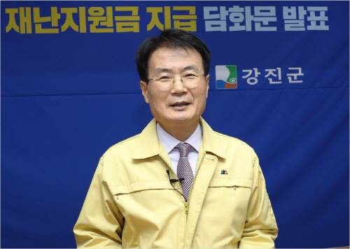 이승옥 강진군수는 28일 담화문을 통해 "어려운 지방재정 여건 속에 코로나 대유행이 장기화가 계속되면서 군민의 경제생활에 조금이나마 보탬이 되고자 재난지원금 지급을 결정했다"며 "이번 지원금이 자영업자와 소상공인의 어려움을 극복할 수 있는 마중물이 될 수 있길 바란다"고 밝혔다.