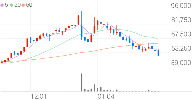 지놈앤컴퍼니가 VI가 발동했다. 전일 대비 9.07% 하락한 50,100원에 거래되고 있다.