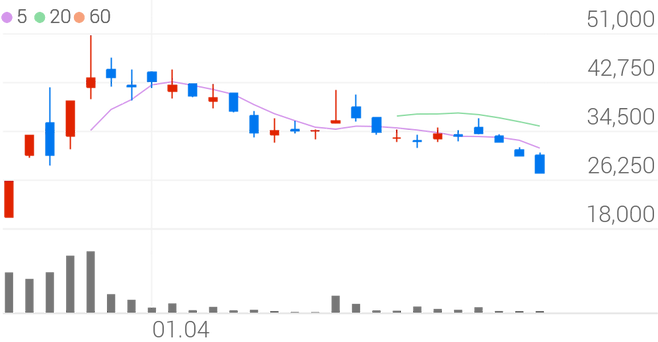 알체라가 VI가 발동했다. 전일 대비 9.39% 하락한 27,500원에 거래되고 있다.