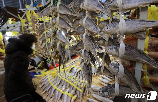 (서울=뉴스1) 구윤성 기자 = 29일 오후 서울 동대문구 경동시장에서 시민들이 장을 보고 있다. 서울시는 이날부터 민족 최대 명절 설을 앞둔 다음달 10일까지 시내 139개 전통시장에서 설 제수용품과 농수축산물을 최대 50% 할인된 가격으로 판매한다고 밝혔다. 참여 시장은 공통적으로 행사기간 동안 시민들이 저렴한 가격으로 명절 제수용품과 농수축산물을 장만할 수 있도록 5~50% 할인 판매한다. 시장별로 제로페이로 결제하거나 일정 금액 이상 구매할 경우 온누리상품권, 떡국용 떡 등을 증정한다. 2021.1.29/뉴스1