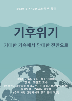 경희사이버대학교 교양학부는 오는 2월 1일 '거대한 가속에서 담대한 전환으로' 주제로 기후위기 특강을 진행한다고 1월 29일 밝혔다.