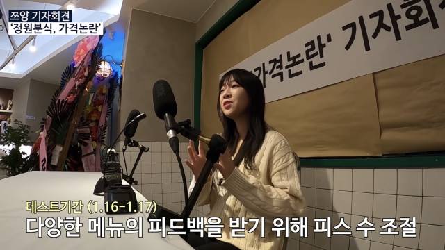 의견이 분분하자 쯔양은 기자회견 콘셉트의 영상을 올려 “(식당은) 아직 오픈도 안 했다”며 집중 공격을 받았던 9000원 떡볶이에 대해 “양이 거의 2인분이다. 그릇 안이 깊게 파여 있어서 적어 보인 건데, 테스트 과정에서 한 번도 듣지 못한 말”이라고 해명했다. 이어 26일 악플러에 대해 고소를 진행하겠다는 강경한 입장을 밝혔다.
