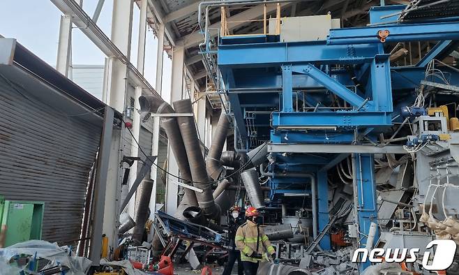 29일 오후 4시33분쯤 경북 구미시 산동면 봉산리 AGC화인테크노 코리아(아사히 초자) 공장에서 원인을 알 수 없는 폭발사고가 발생해 신고를 받고 출동한 119대원들이 화재 진압 및 현장을 수습하고 있다.