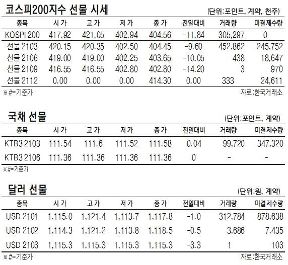 [표]코스피200지수 ·국채·달러 선물 시세(1월 29일)