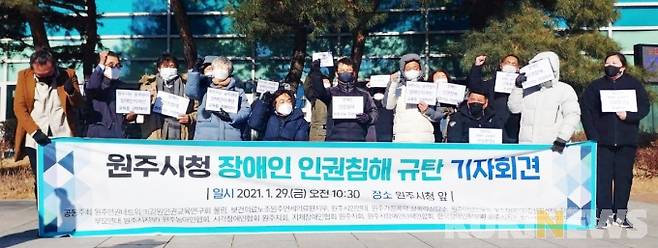 [원주=쿠키뉴스] 박하림 기자 =강원 원주 지역 시민사회단체들이 원주시청 장애인 공무원 인권침해를 규탄하고 나섰다.