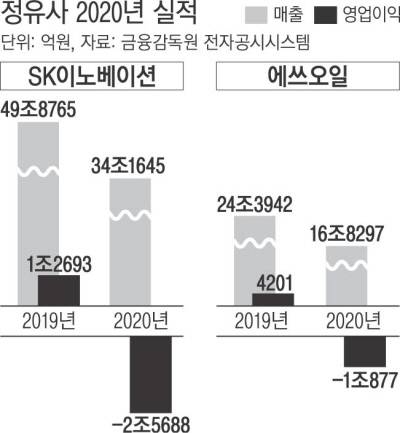 전날 4분기 및 2020년 실적을 발표한 에쓰오일도 연간 기준 사상 최대 폭의 적자를 기록했다. 에쓰오일의 지난해 매출은 16조8297억원으로 전년 대비 31.0% 줄어들었으며, 영업손실액은 1조877억원에 이르렀다.