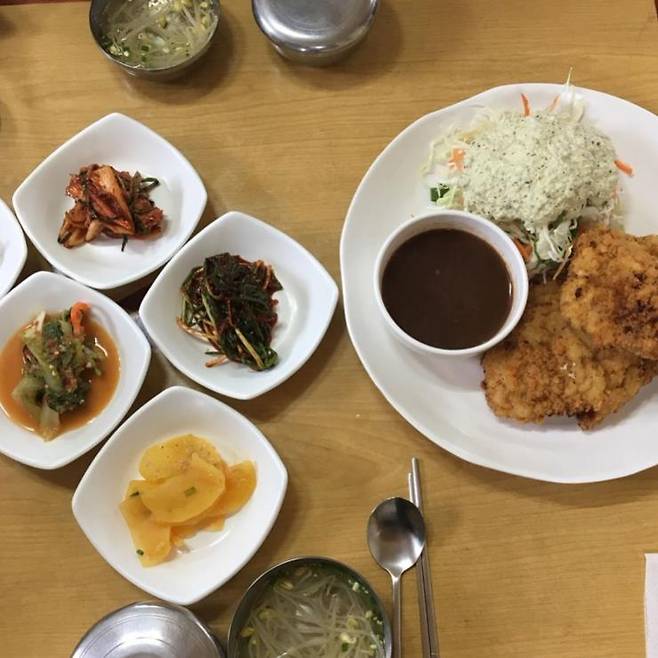 간판에는 보쌈, 족발, 낙지전골이라 쓰여있지만 점심에 들르면 오직 돈가스만 파는 신기한 집. 하동 읍내에서 일하는 진짜 하동 사람들이 평범하고도 보통의 식사를 먹고 싶을 때 들르는 곳이다. 식사 중간중간 “고기 더 드릴까?”를 묻고, 더 달라 하면 새로 튀긴 돈가스를 접시에 채워준다. 파김치, 열무김치 등의 밑반찬 또한 이 집의 백미.