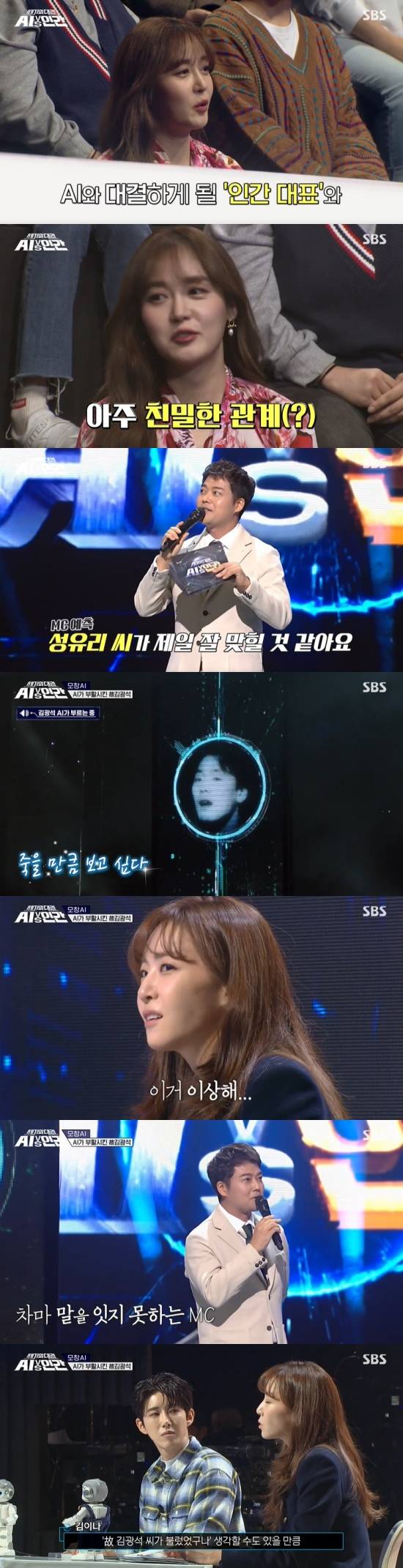 전현무는 "오늘 성유리 씨 역할이 크다. 성유리 씨가 제일 잘 알 거 같다"라며 기대했다. 이어 목소리를 학습하는 AI와 옥주현의 대결이 예고돼 눈길을 끌었다.