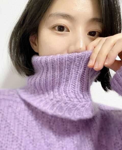 공개된 사진 속에서 박수진은 바이올렛 색상의 목폴라 니트를 입은 자신을 카메라에 담은 모습.