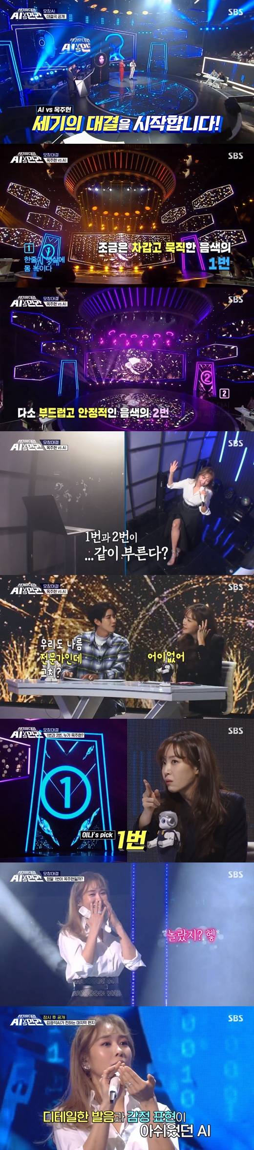 29일 밤 방송된 SBS 신년특집 '세기의 대결 AI vs 인간' 모창 AI 편에서는 인간 대결자로 출연한 옥주현이 특유의 가창력으로 인공지능과 한판 대결을 벌였다.