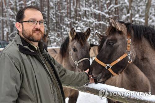epa08972979 Conservative breeding of the Polish horse in the Roztocze National Park in Florianka, eastern Poland, 29 January 2021. It is the only primitive horse breed in Poland. The refuge of the Polish Horse Breeding Reserve was established in 1982. It covers an area of approximately 180 hectare, which includes forests, ponds and the Swierszcz stream, which serves as a watering hole for horses. EPA/Wojtek Jargilo POLAND OUT