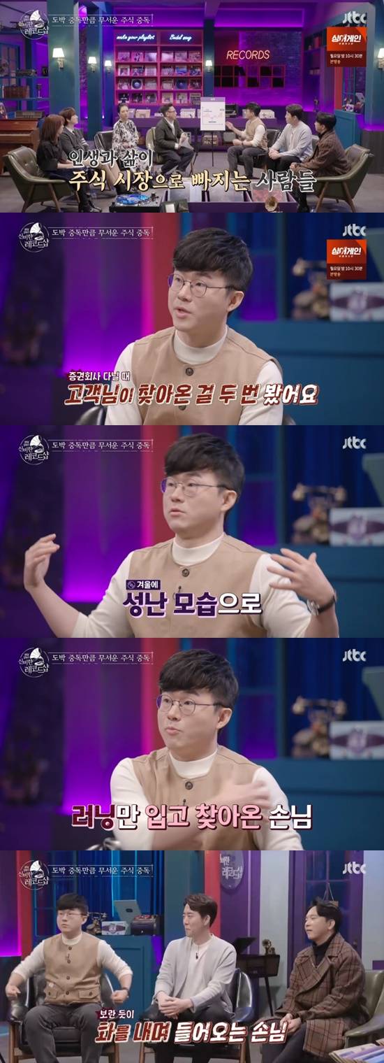 이어 "증권회사 다닐 때 고객님이 쳐들어온 걸 두 번이나 봤다. 한 분은 한겨울인데 성난 모습으로 러닝 셔츠만 입고 왔다. 기름통을 들고 찾아오신 분도 있었다"고 말해 중독의 위험성을 강조했다.