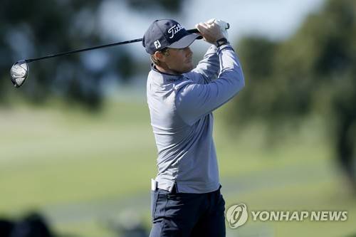 epa08973606 Tyler Duncan of the US tees off on the first tee during the second round of the Farmers Insurance Open at Torrey Pines Golf Course in San Diego, California, USA, 29 January 2021. EPA/ETIENNE LAURENT