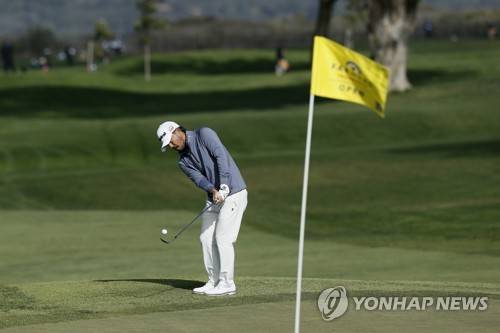 epa08973776 Satoshi Kodaira of Japan chips on to the fifth green during the second round of the Farmers Insurance Open at Torrey Pines Golf Course in San Diego, California, USA, 29 January 2021. EPA/ETIENNE LAURENT