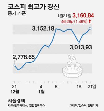 3,200선 돌파 코스피..밸류에이션 '괴리율' 부각