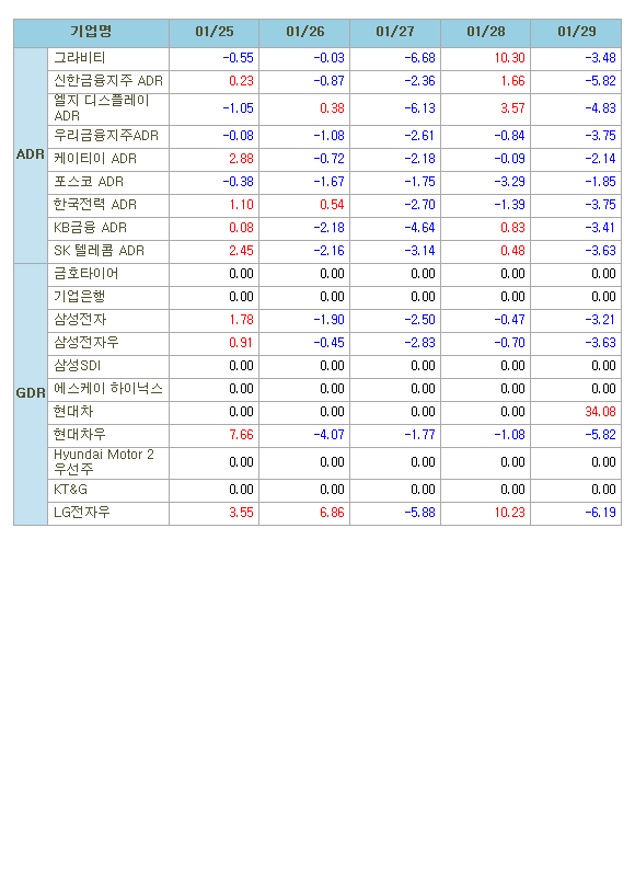 [표]해외 한국 DR 주간등락률
