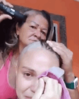 리벨로 씨는 "엄마 그만해요"라고 소리쳤지만, 고메스 씨는 말 없이 딸을 감싸 안은 채 머리카락을 밀었습니다. 어머니가 자신과 똑같은 모습이 되어가자 결국 리벨로 씨는 눈물을 쏟았고, 어머니도 그런 딸을 보며 눈물을 글썽였습니다.