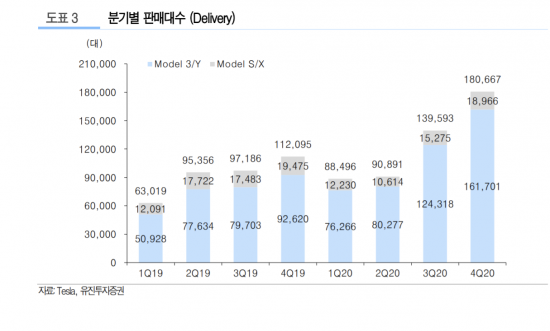[아시아경제 이민지 기자] 테슬라가 올해 자동차 출하량 증가로 실적 성장세를 보일 것이란 의견이 나온다. 지난해 4분기 실적 부진으로 주가가 단기적으로 조정을 받고 있지만, 중장기적으론 우상향 곡선을 그릴 것으로 예상됐다.