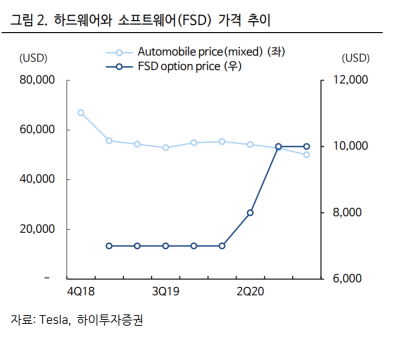 이번 콘퍼런스 콜에서 일론 머스크 최고경영자(CEO)가 강조한 완전자율주행(FSD) 서비스는 현재 베타 테스트를 진행하고 있으며 올해 구독 서비스 출시를 예정하고 있다. 일론 머스크는 '차량과 FSD로 1조달러 밸류에이션이 정당화될 수 있다‘며 자신감을 보이고 있다. 하이투자증권 측은 “FSD가 출시되면 이연 수익으로 처리했던 서비스 매출이 서서히 인식되기 시작한다는 점에서 긍정적 요인”이라며 “타 OEM 업체에 라이센싱할 의향이 있으며 기술 공유를 통해 자료수집량을 확대할 수 있다고 언급한 점도 긍정적”이라고 말했다.