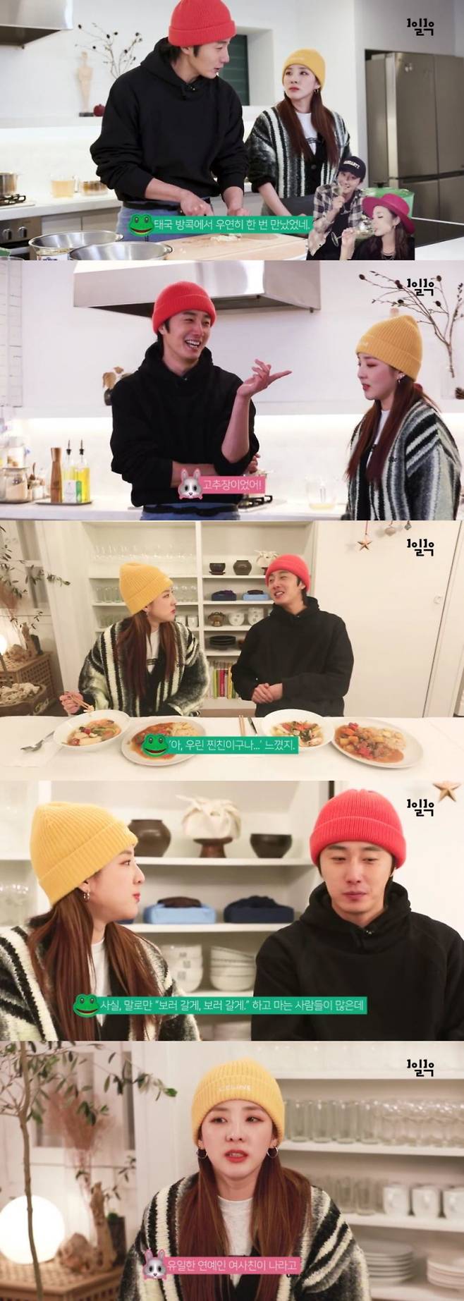 요리 도중 정일우와 산다라박은 13년 전 첫 만남을 회상하기도 했다. 두 사람은 드라마 ‘돌아온 일지매’에 함께 출연한 인연으로 친구가 됐다. 산다라박은 “첫 만남이 대마도였고, 우린 고립됐었고, 일식 도시락이 느끼해지던 찰나에 내가 너에게 고추장을 줬잖아. 우리의 시작은 고추장이었어”라고 말했고, 정일우는 “너 기억력 진짜 좋다”며 맞장구를 쳤다.