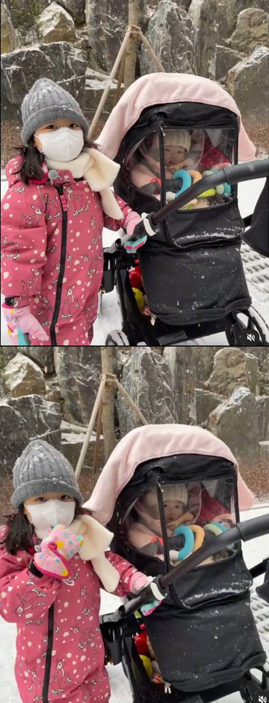 공개한 영상에는 이윤지의 두 딸 라니, 소울이의 모습이 담겼다. 두 딸은 내리는 눈을 맞으며 새로운 세상을 만끽하고 있다.