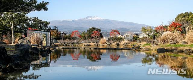 [서귀포=뉴시스]우장호 기자 = 24절기의 첫 번째인 입춘(立春)을 나흘 앞둔 30일 오후 제주 서귀포시 칠십리공원 연못에 비친 한라산의 모습이 아름답다. 2021.01.30. woo1223@newsis.com