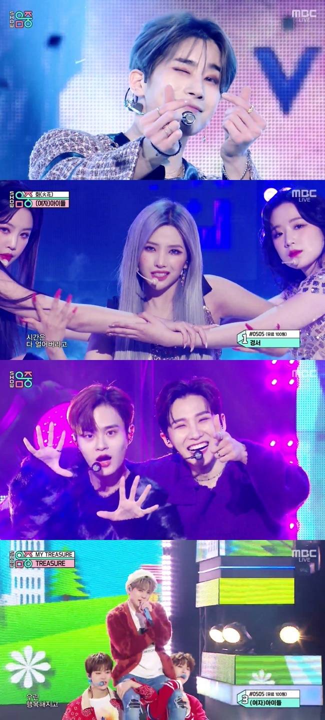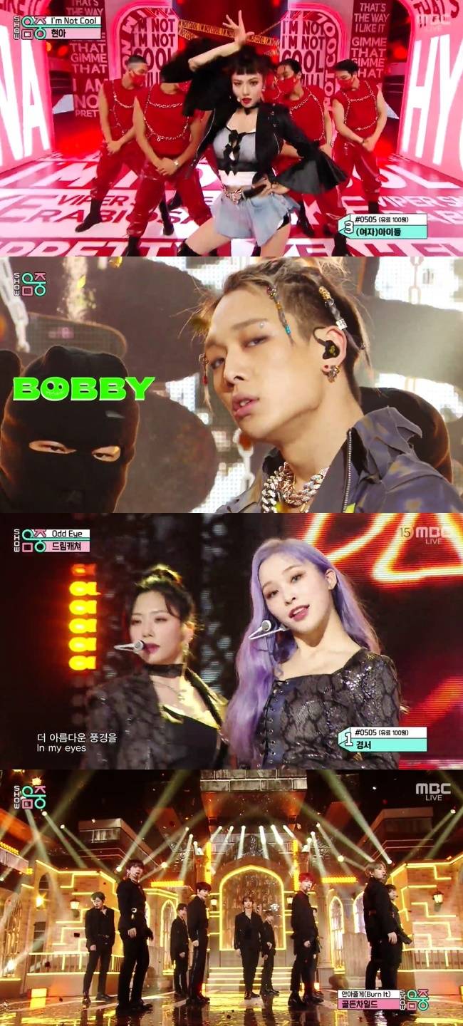이날 방송에는 유노윤호, 현아, BOBBY, 드림캐쳐, 골든차일드, VICTON(빅톤), AB6IX, (여자)아이들, 원어스, 체리블렛, MCND, CRAVITY, TREASURE, 엘라스트, T1419, 안성준이 출연했다. (사진=MBC '쇼! 음악중심' 방송 캡처)