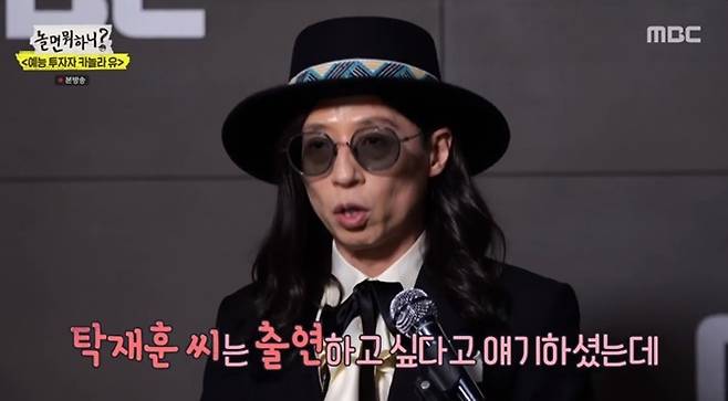 그는 "출연 의사를 적극적으로 밝힌 분들이 있다. 탁재훈씨가 출연하고 싶다고 했는데 저희가 고민 중이다"고 말해 웃음을 자아냈다. (사진=MBC '놀면 뭐하니?' 캡처)