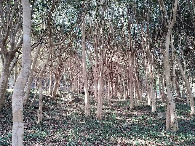 | ▲ 제5경 백련사 동백숲 천연기념물 제151호로 지정된 우리나라에서 가장 울창한 동백숲이다. |