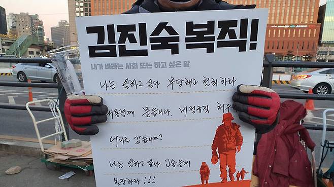 김진숙 위원은 지난해 12월 30일 부산에서 청와대까지 걷는 도보 시위에 나섰는데 다가오는 2월 7일 청와대에 도착할 예정입니다.