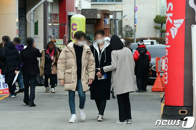 (광주=뉴스1) 정다움 기자 = 30일 오후 광주광역시 동구 충장로우체국 일대에서 한 교인이 오가는 시민들에게 전도활동을 하고 있다.2021.1.30/뉴스1