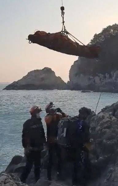 부산 해안절벽서 추락한 60대 낚시객 구조