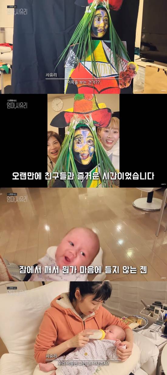 이날 영상에서 사유리는 피카소 그림으로 변신한 모습을 공개했다. 만삭의 배를 캐릭터 '토마스'로 꾸민 데 이어 두 번째 분장. 사유리는 "원작과 구분이 안 가는 싱크로율"이라며 "오랜만에 가족과 즐거운 시간을 보냈다"라고 만족감을 표했다.