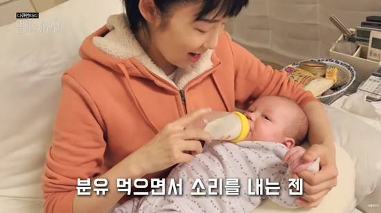 이어 사유리는 잠에서 깬 아들 젠을 달래는 모습으로 등장했다. 그러나 젠은 배가 고픈 듯 쉽게 잠에 들지 않았다. 사유리는 우유를 먹이며 "배에서 꼬르륵 소리가 난다. 식탐이 너무 많아서 배가 고프면 미친 듯이 난리를 친다. 보통 4시간에 한 번 주려고 하는데 4시간 전에 계속 배고파한다"라고 설명했다. 그러면서 우유를 마시지 않을 때는 젖병을 돌리면 된다는 엄마의 꿀팁을 전수하기도 했다.