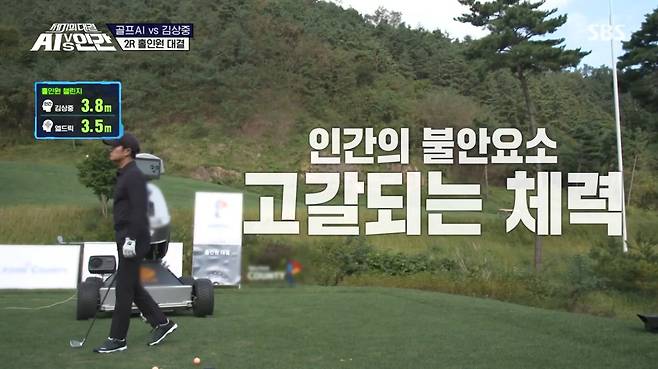 하지만 박세리는 "골프를 하기에 AI가 터무니없이 부족할 수 있다"고 단언했다. 힘을 어떻게 활용하는 가는 인간 고유의 능력이며 거리와 힘에서 인간이 질 수는 있겠지만 나머지는 미지수라는 것. 사전 미팅을 마치고 박세리는 파트너로 '골프 열정맨' 김상중을 영입했다. 신나게 아재 개그를 선보인 김상중은 "골프가 멘탈 게임이라고 하는데 멘탈 강하지 않다"면서도 날카롭게 분석해 "AI는 환경적 요인에 약할 거"라고 예상했다.