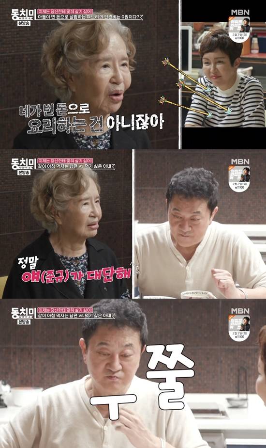 또한 어머니는 며느리에게 "(우리 아들) 덕분에 음식을 할 수 있지 않나. 정말 대단해"라며 아들을 흐뭇하게 바라봤다. 이어 "(이 음식들을) 네가 번 돈으로 하는 건 아니잖아"라고 말했다.