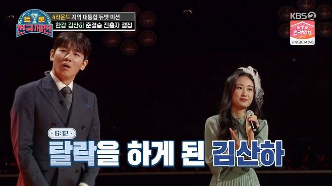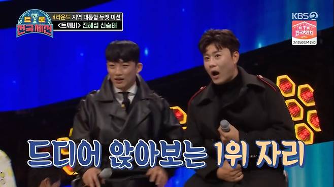 30일 오후 방송된 KBS 2TV ‘트롯 전국체전’에서는 4라운드 지역 대통합 듀엣 미션 마지막 무대가 펼쳐졌다.