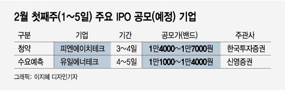 공모주 청약 일정은 당분간 한산하다. 2월 첫째주 피엔에이치테크 혼자 청약을 실시한다. 설 연휴가 포함된 2월 둘째주엔 공모주 청약이 없다.