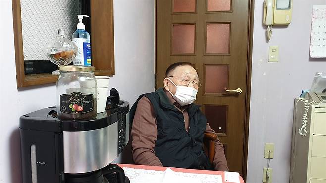 | ▲ 도쿄 자택에서 인터뷰에 응하고 있는 기시 우이치씨 기시 우이치(96)씨는 1943년 해군비행예과연습생에 지원하여 아시아 태평양 전쟁에 참전하였다. |
