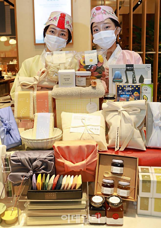 [이데일리 김태형 기자] 30일 서울 강서구 롯데백화점 김포공항점 라이프스타일 큐레이션 브랜드 '시시호시'에서 모델들이 설 선물세트를 선보이고 있다.