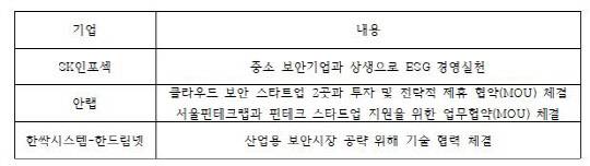 기업 간 협력 관계를 구축해 시장 경쟁력을 끌어올리고, 스타트업을 지원해 보안 산업 활성화를 도모하려는 것으로 풀이된다.