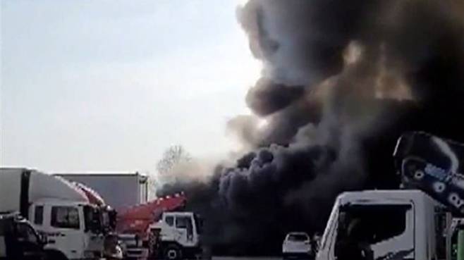 시커먼 연기가 하늘로 치솟습니다.