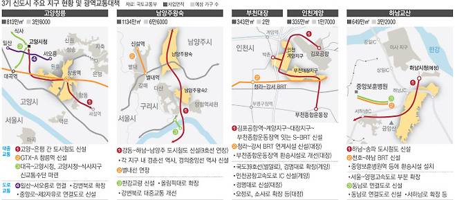 3기 신도시의 교통대책은 마련됐지만 지역에 따라선 세부 노선이나 사업 일정 등이 정부 계획에 따라 변경될 수 있다. 국토부 관계자는 “지구별 세부 교통대책은 공공기관 예비타당성조사를 거쳐 사업계획을 확정하고, 이와 병행해 인허가 절차 등도 추진해나갈 계획”이라고 밝혔다.