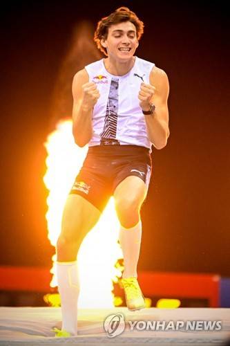 epa08977565 Armand Duplantis of Sweden reacts during the men's Pole Vault at the ISTAF Indoor international athletics meeting in Duesseldorf, Germany, 31 January 2021. EPA/Sascha Steinbach / POOL