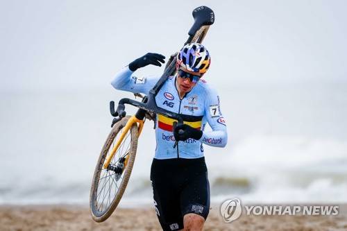 epa08977631 Wout van Art of Belgium in action during the last day of the Cyclo-cross World Championships in Ostend, Belgium, 31 January 2021. EPA/BAS CZERWINSKI