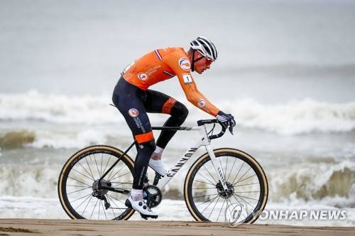 epa08977633 Mathieu van der Poel of Netherlands in action during the last day of the Cyclo-cross World Championships in Ostend, Belgium, 31 January 2021. EPA/BAS CZERWINSKI